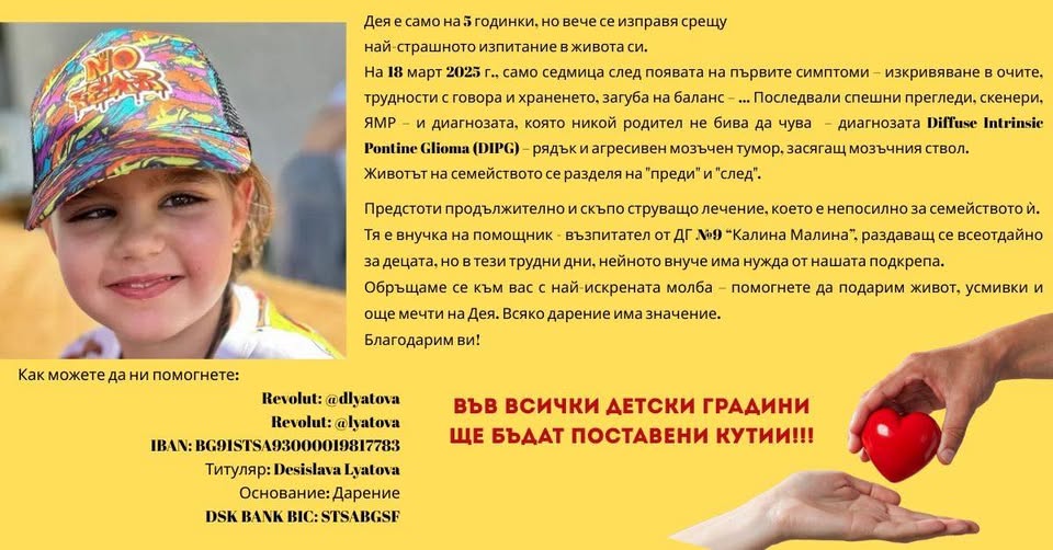 04.2025 ️ Уважаеми приятели на ДГ 6 “Българче”! Обръщаме се към Вас с най-искрената молба да помогнем на Дея. Всяко дарение има значение. Благодарим Ви! Галерия Обратно към новини