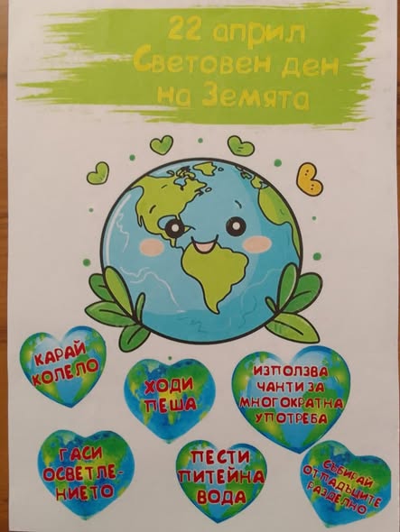 22 АПРИЛ – МЕЖДУНАРОДЕН ДЕН НА ЗЕМЯТА От 1970 г. насам Денят на Земята насърчава хората да научат повече за замърсяването, промените в климата, застрашените видове и много други екологични проблеми на нашата планета. Децата от група “Калинки” научиха повече за опазването и грижата за Земята.