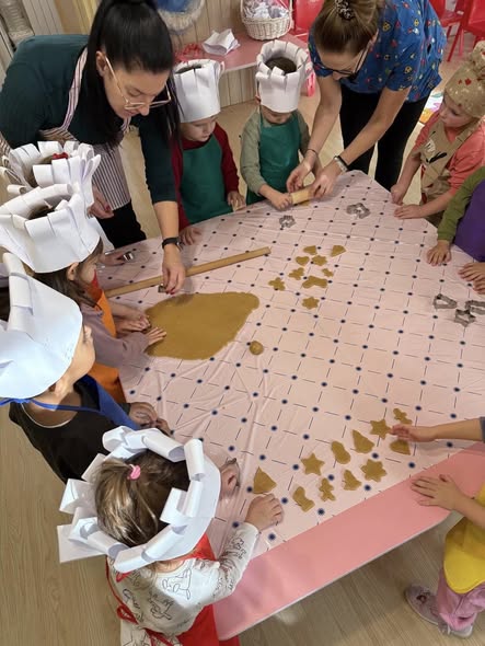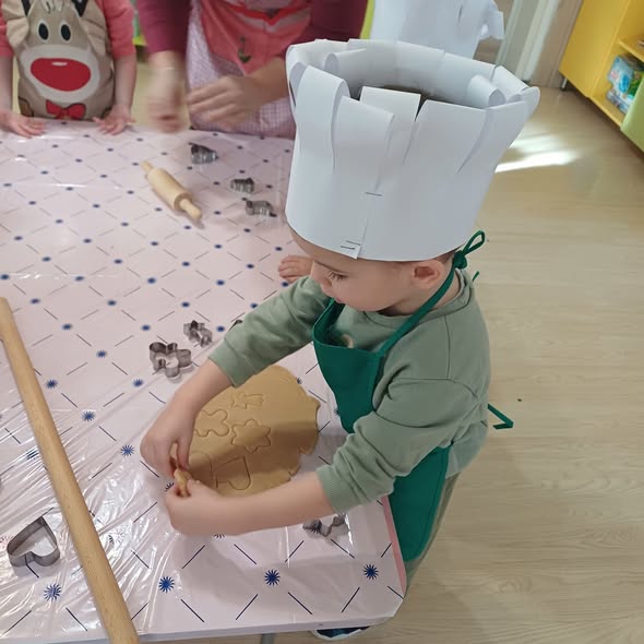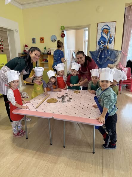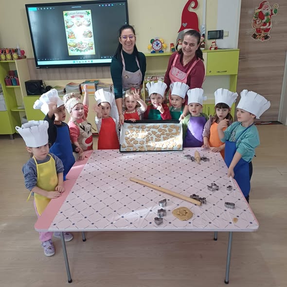 Днес в детската градина се носи аромат на Коледа! Децата от група "Усмивки" направиха коледни бисквитки, с които да почерпят Добрия Старец, когото всички очакват с нетърпение. Малките сладкари се забавляваха докато разточваха тестото и изрязваха фигурките.