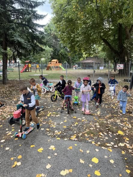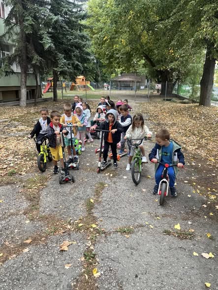 През 2025 г. ЕВРОПЕЙСКАТА СЕДМИЦА НА МОБИЛНОСТТА ни приканва да си представим и да градим общества, в които транспортните услуги са достъпни, приобщаващи и безопасни, като се гарантира, че общественият транспорт, ходенето пеша и колоезденето са справедливи възможности за всеки. С много радост и игри децата от група “Щурчета” и група “Пчелички” се включиха в Европейската седмица на мобилността.