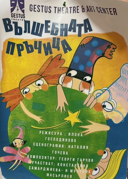 Днес нашите деца се насладиха на театралната постановка “Вълшебната пръчица”, представена от GESTUS THEATRE & ART CENTER GESTUS. РЕЖИСУРА: ИЛОНА ГОСПОДИНОВА СЦЕНОГРАФИЯ: НАТАЛИЯ ГОЧЕВА КОМПОЗИТОР: ГЕОРГИ ГАРЧОВ УЧАСТВАТ: КОНСТАНТИНА САМАРДЖИЕВА И МУСТАФА МАСЪРЛИЕВ