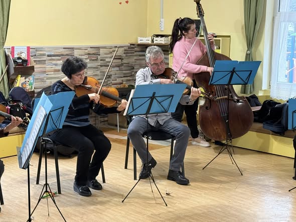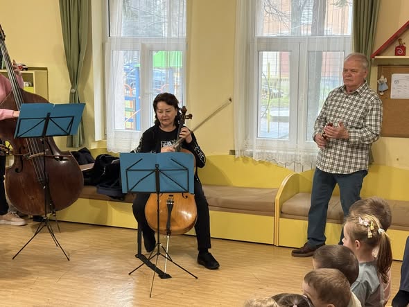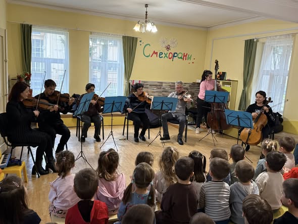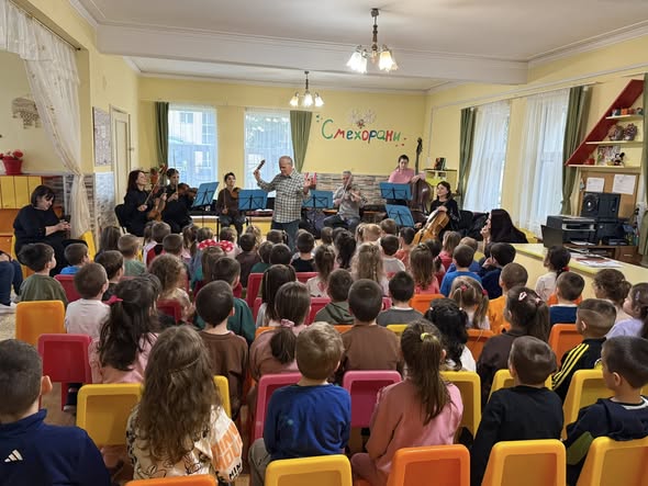 С много усмивки и вълнение Камерен оркестър „Орфей“ с диригент Райчо Христов гостува в ДГ № 6 „Българче“. Под диригентството на маестро Райчо Христов децата се потопиха в магията на музиката с програма, изпълнена с любими детски произведения. Малките ни възпитаници имаха възможност да се запознаят отблизо с инструментите – цигулка, виола, виолончело и контрабас, и да усетят тяхното звучене по един незабравим начин. Най-голямата радост беше моментът, в който децата станаха част от музикалното преживяване, включвайки се с изпълнения на детски инструменти. Срещата с музиката остави много емоции, вдъхновение и блестящи очи!