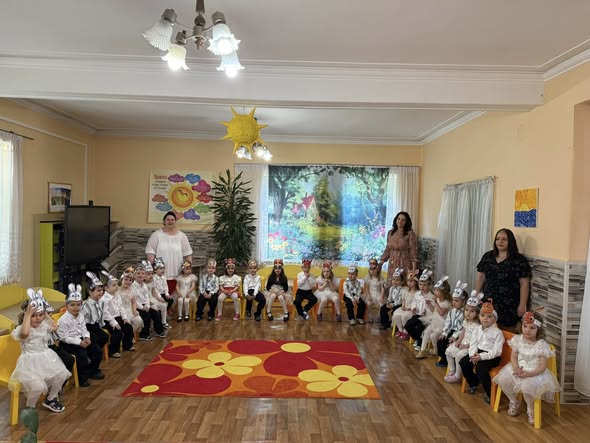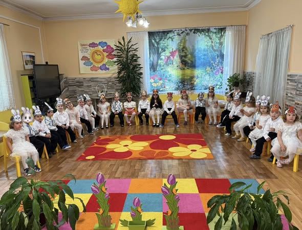 ”С дъх на здравец и тинтява рано утрото изгрява. Татковци и майки стават къщичките си оправят и повеждат за ръчица мъничките си дечица. Спират под една калина - тук е детската градина…“ Звънливи детски гласчета донесоха празнично настроение в детската ни градина! С много радост и пъстра палитра от детски усмивки, в първа група „Слънчице” се състоя празник: “ В горската детска градина”.