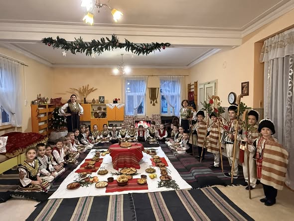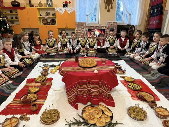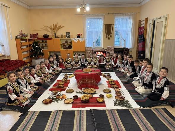” Бъдни вечер, Рождество- туй е мило тържество. Да посрещнем коледари, дето пеят песни стари. Ще ги дарим с много дари, кой с кравайче, кой с парица, а водача с броеница, че обича да се смее и где ходи все си пее!” В група „Калинки“ се проведе вълнуващо тържество, посветено на традиционната вечеря на Бъдни вечер. С много старание и настроение децата пресъздадоха българските обичаи и символиката на този светъл празник. Малките „калинки“ се запознаха със значението на празничната трапеза, традиционните постни ястия и народните вярвания, свързани с Бъдни вечер. Атмосферата беше топла и радостна, носеща истински коледен дух, а изпълненията на децата превърнаха тържеството в празник на българските традиции.